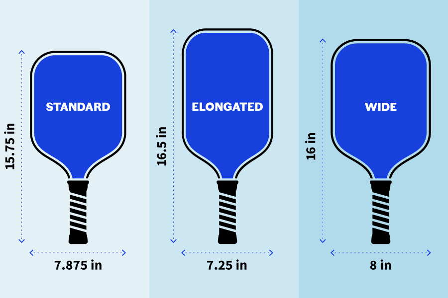 The length and shape determine striking stability. There are three types of pickleball paddle shapes: