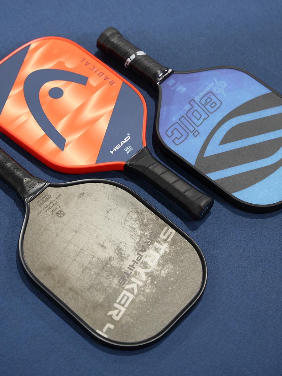 Handle size and length determine how well you can grip the paddle and achieve accuracy in your shots. These specifications are generally standard for paddles sold in stores based on average hand sizes (e.g., average handle thickness ranges from 4.125 to 4.375 inches in circumference). If you have larger or smaller hands than average, you can find suitable models. You can also modify the thickness of the handle by adding an overgrip which gives the racket a better grip. A longer overgrip can also be used for two-handed backhands.