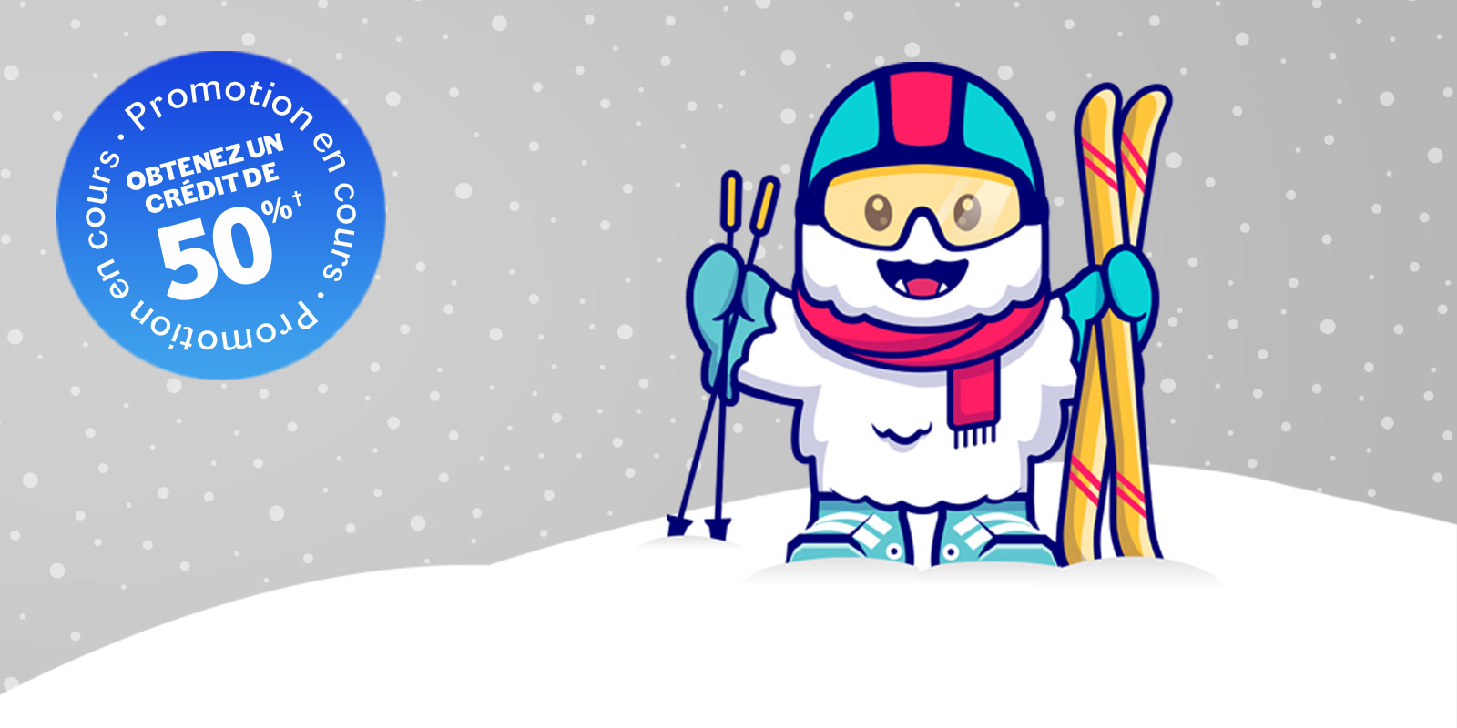 † De la valeur de votre équipement. *Applicable à l’achat d’un nouvel équipement pour enfant sélectionné (skis, fixations et/ou bottes). Certaines conditions s’appliquent.